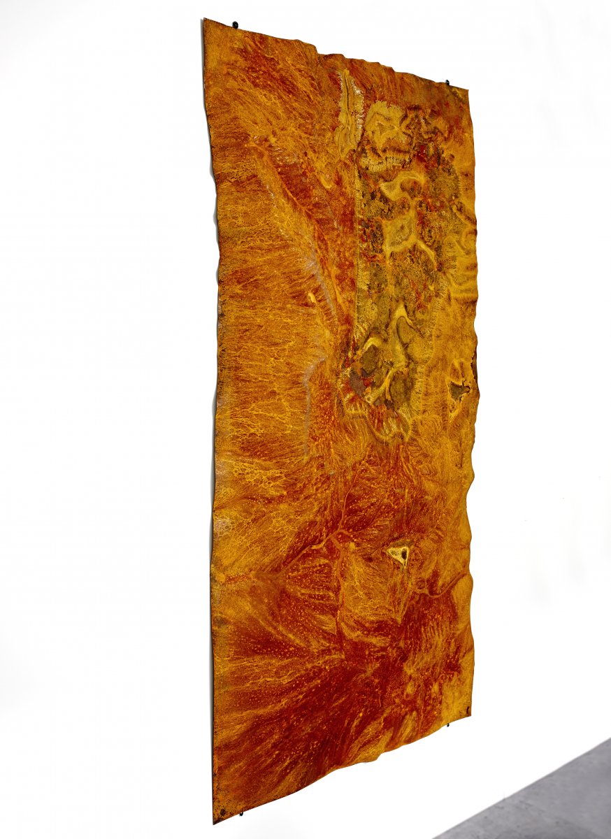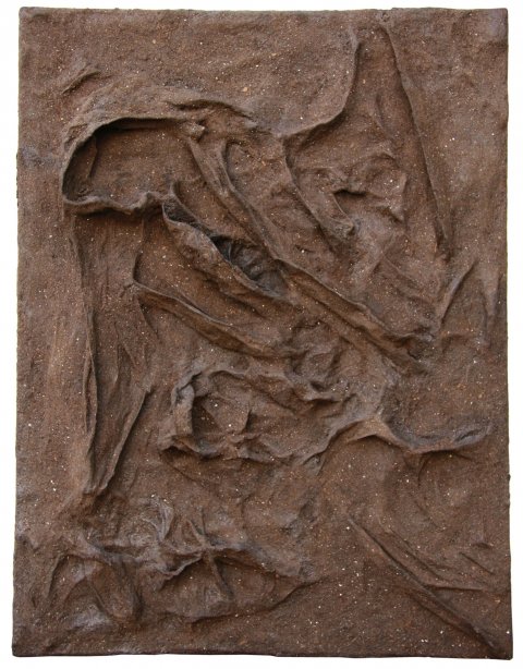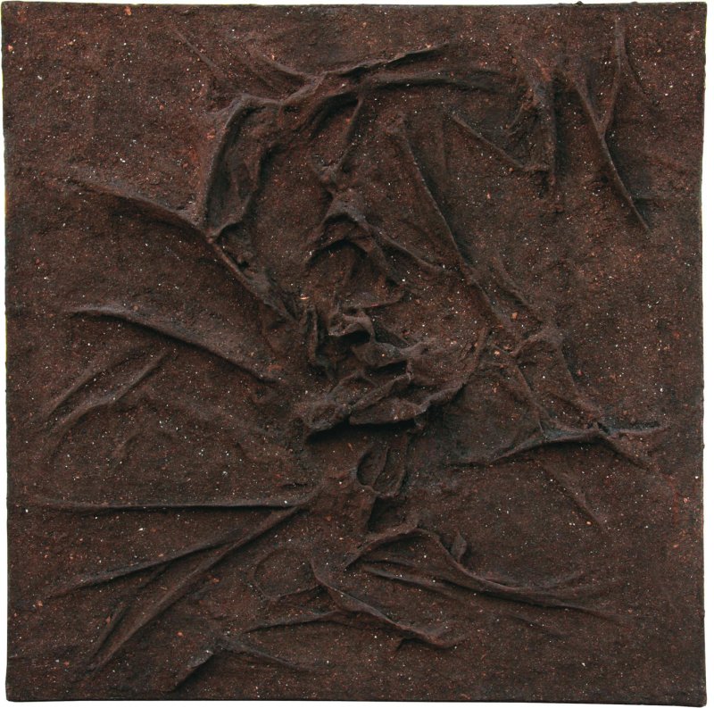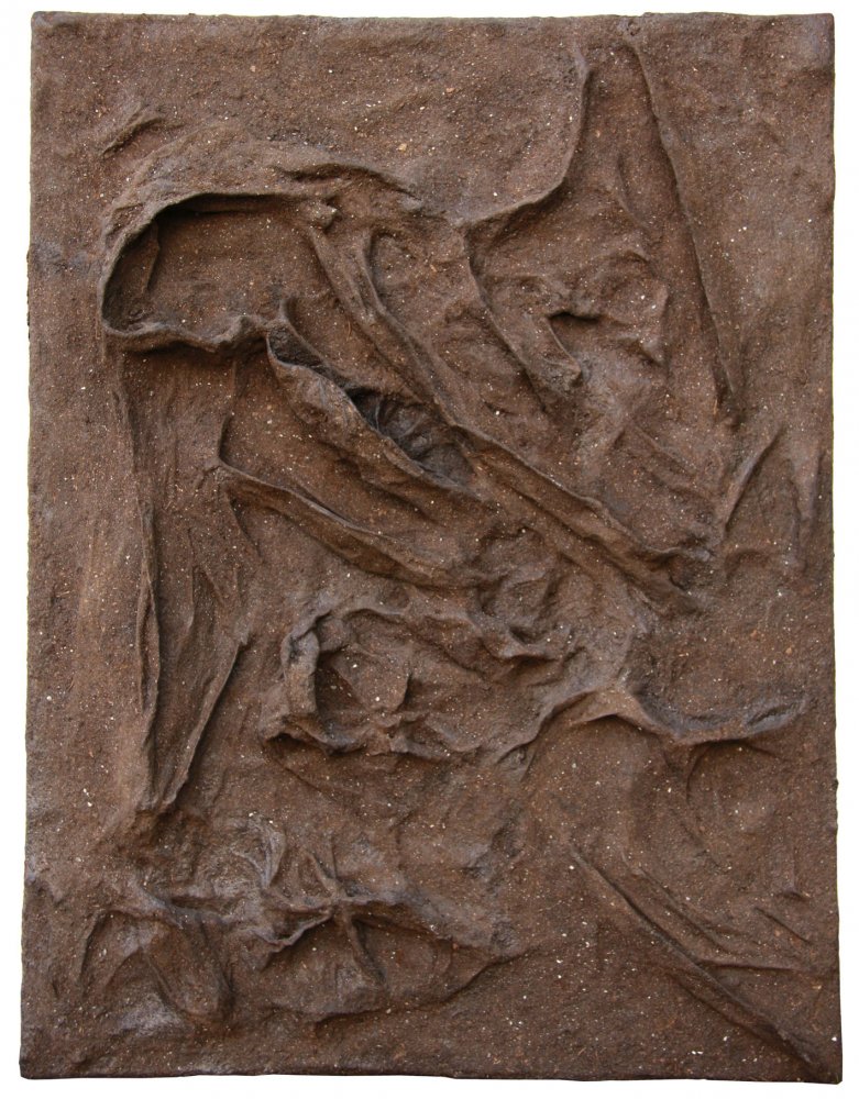 Untitled: Soil, newspaper and glue on canvas.